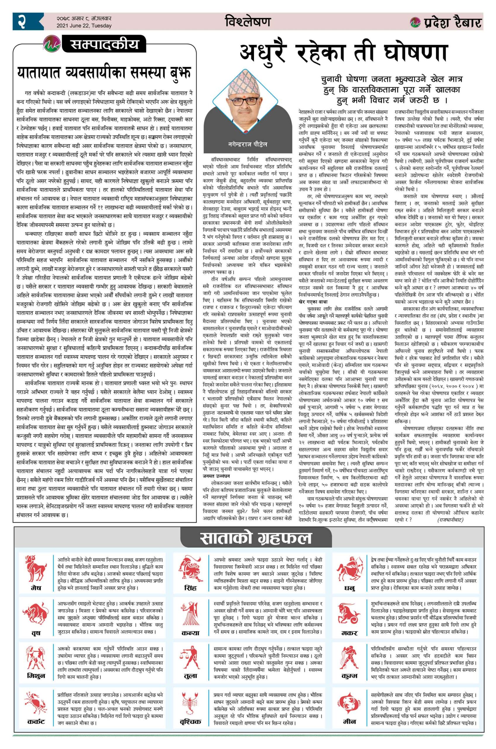 प्रदेश रैबार २०७८ असार ०८