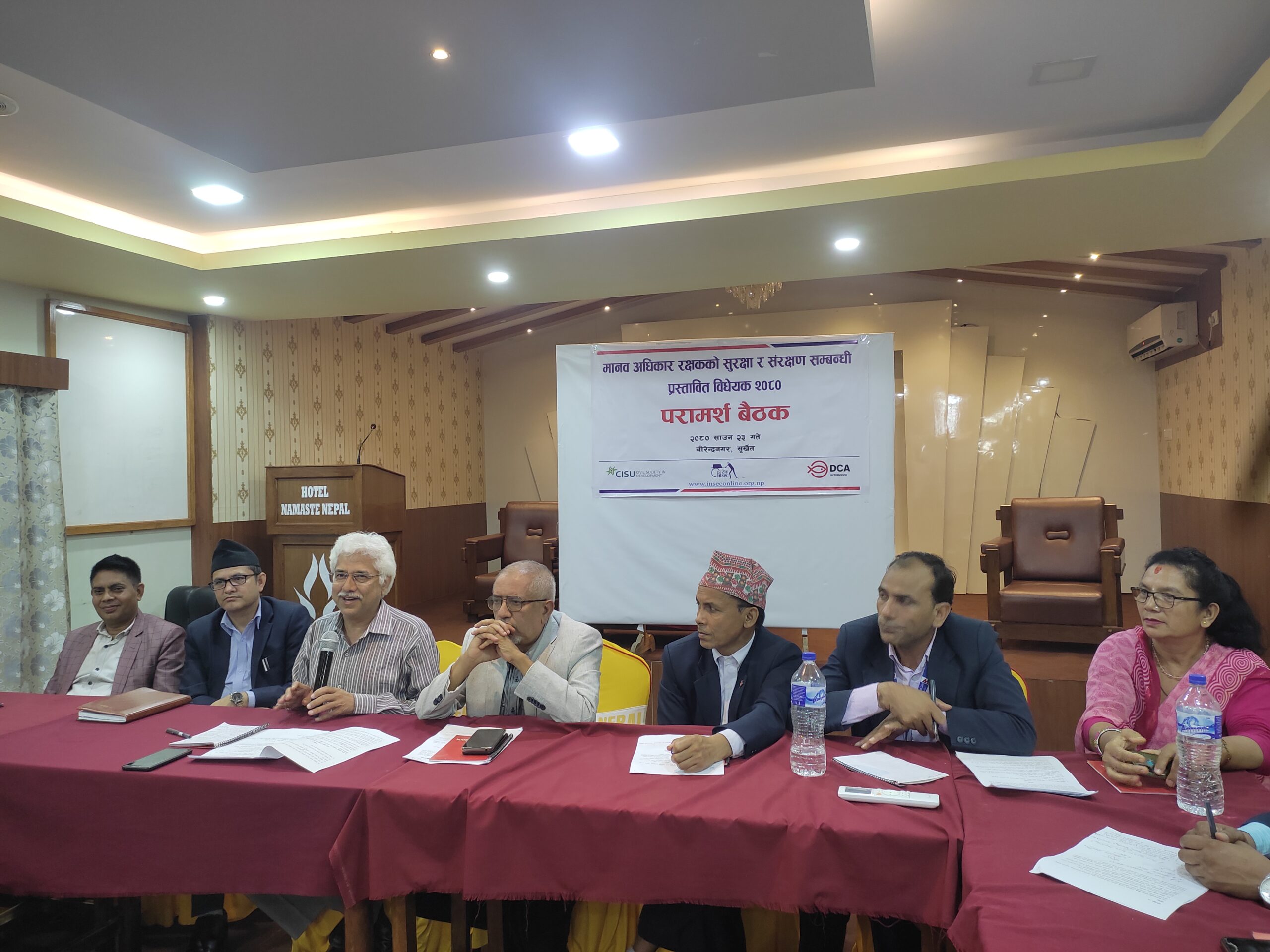 इन्सेकले साउन २३ गते वीरेन्द्रनगरमा आयोजना गरेको मानव अधिकार रक्षकको सुरक्षा र संरक्षण सम्बन्धी प्रस्तावित विधेयक २०८० को विषयमा आयोजना गरेको परामर्श बैठकमा बोल्दै आयोगका काबा अध्यक्ष डा. ढुंगेलले सो कुरा बताएका हुन् । पत्रकारिता क्षेत्रमा सम्बद्ध रक्षकलाई मानव अधिकार रक्षकको पनि रक्षकको रुपमा लिनुपर्ने चर्चा गर्दै संघ तथा प्रदेश सरकारले मानव अधिकार रक्षकको सुरक्षा र संरक्षण सम्बन्धी ऐन निमार्ण गर्नु अहिलेको प्रमुख आवश्यकता रहेको बताए ।