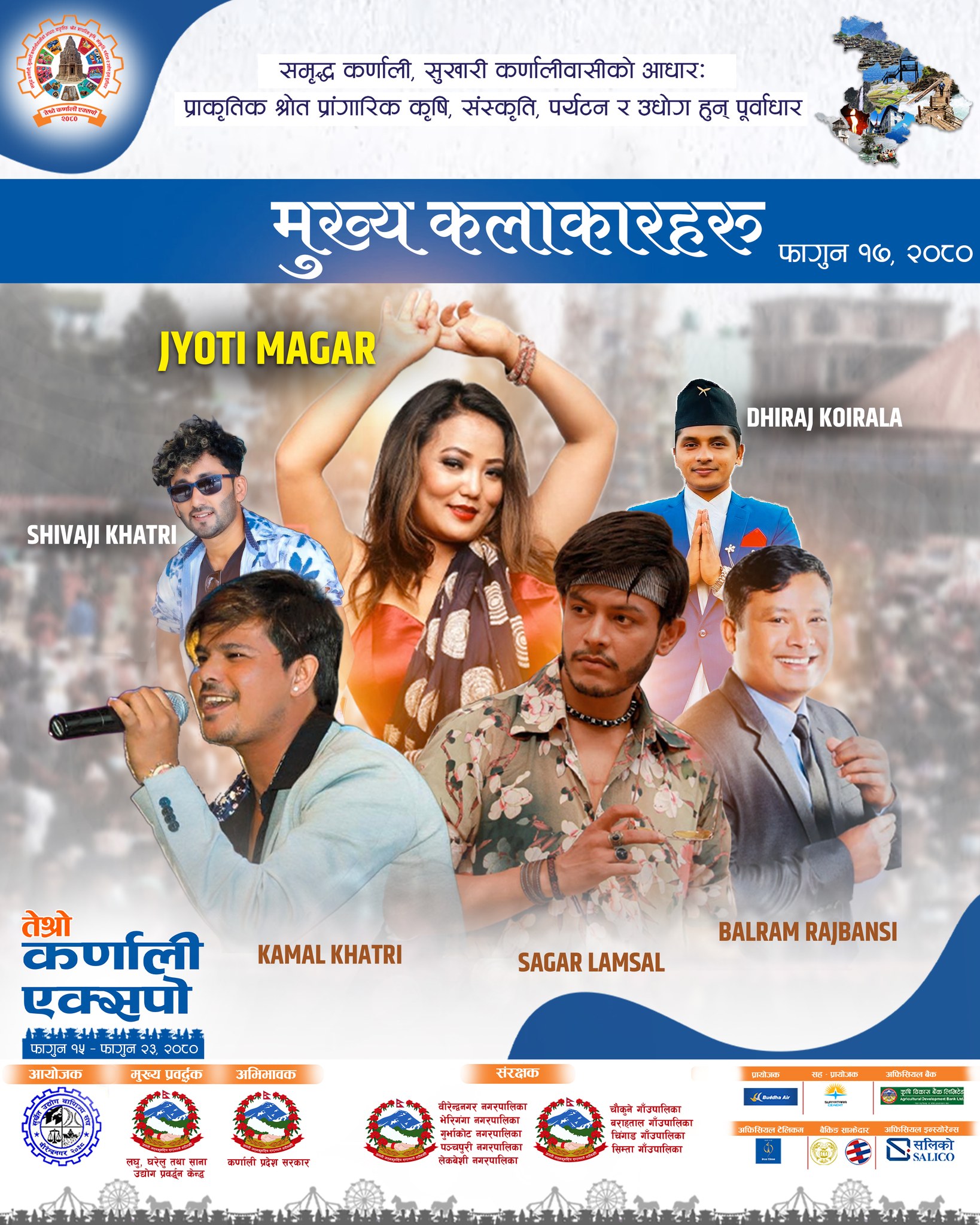 सुर्खेत । वीरेन्द्रनगर सुर्खेतमा जारी तेस्रो कर्णाली एक्सपोको तेस्रो दिन बिहीबार कलाकार ज्योती मगर लगाएतका कलाकारहरुको प्रस्तुुति रहने आयोजकले जनाएको छ ।