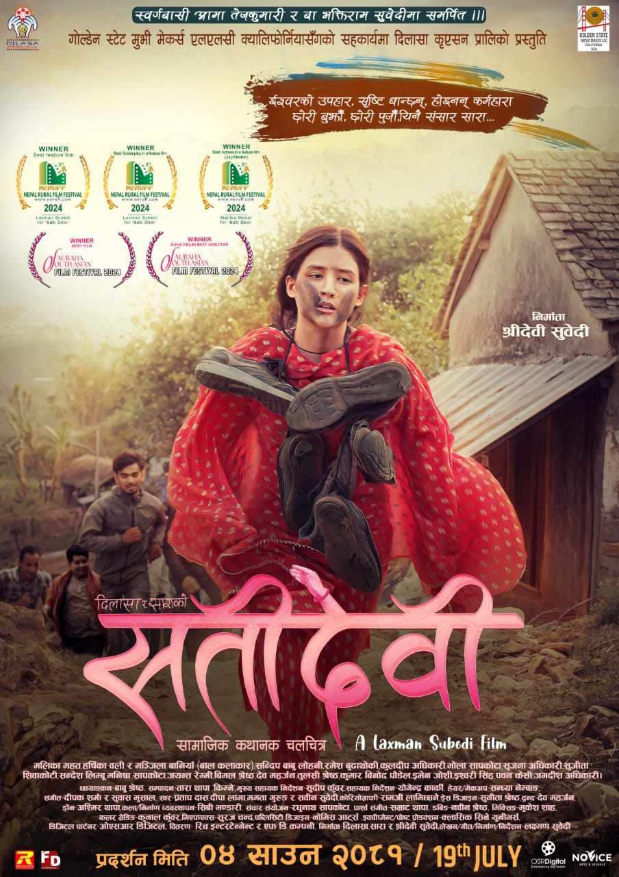काठमाडौं। बहुचर्चित तथा बहुप्रतिक्षित चलचित्र ‘सतीदेवी’को साउन ४ गतेदेखि प्रदर्शन हुने भएको छ । फस्र्टलुक पोष्टर सार्वजनिक भएदेखिनै चर्चामा रहेको चलचित्रको प्रदर्शन मिति सोमबार तय गरिएको हो । लक्ष्मण सुवेदीको लेखन,निर्माण अनि निर्देशनमा बनेको फिल्मलाई मोफसलम एफडि कम्पनी र राजधानीमा रिच इन्टरटेन्मेन्टले बितरण गर्ने छ ।