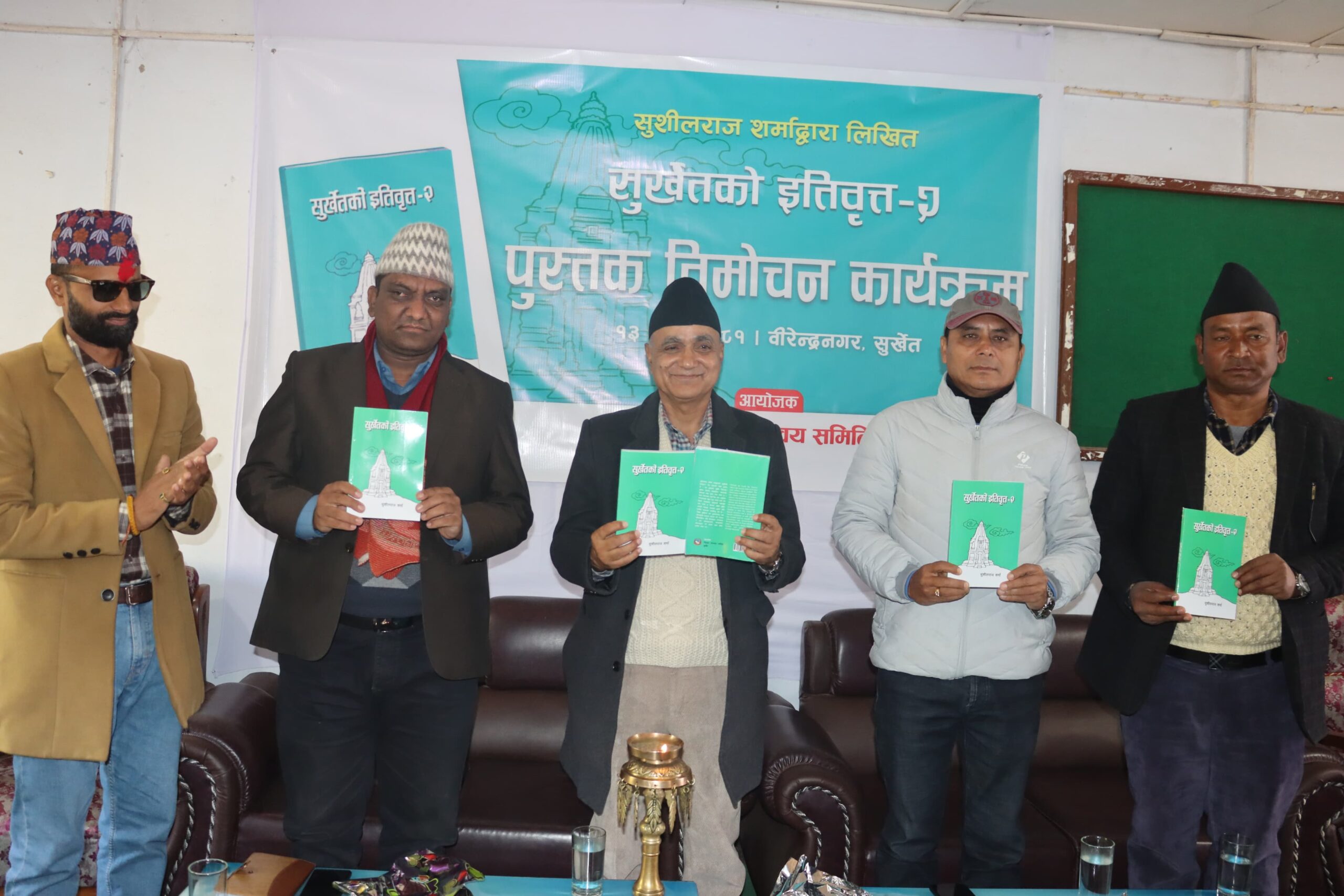 सुर्खेत । पत्रकार सुशीलराज शर्माकाे सुर्खेतकाे इतिवृत्त-२ विमाेचन भएकाे छ । पत्रकार महासंघ शाखा सुर्खेतका अध्यक्षसमेत रहेका शर्माद्वारा लिखित पुस्तककाे कर्णालीका मुख्यमन्त्री यामलाल कँडेलले विमाेचन गरेका हुन् । सुर्खेतकाे समर्ग इतिहास समेटिएकाे शर्माकाे याे दाेस्राे कृति हाे । यस अघि शर्माले सुर्खेतकाे इतिवृत्त-१ लेखिसकेका छन् । शनिबार विमाेचन भएकाे पुस्तक अंग्रेजी र नपाली भाषामा लेखिएकाे छ ।