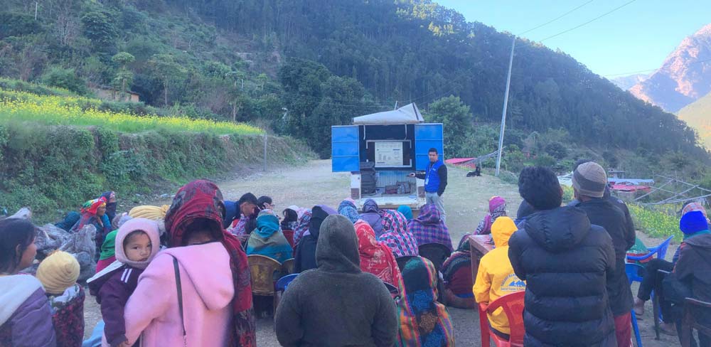 रुकुमपश्चिम । भूकम्प प्रभावित क्षेत्रमा सचेतनाका लागि ‘मोबाइल भ्यान’ प्रयोग गरिएको छ । रुकुमपश्चिम र जाजरकोटमा ‘मोबाइल भ्यान’ अर्थात् घुम्ती गाडीमा भिडियो सामग्री प्रदर्शनीमार्फत विपत्पश्चात्को पुनर्निर्माण, सुरक्षित आवास, कार्यस्थलमा हुने यौनजन्य शोषण र दुव्र्यवहारविरुद्ध प्रभावितलाई जानकारी गराइएको हो ।