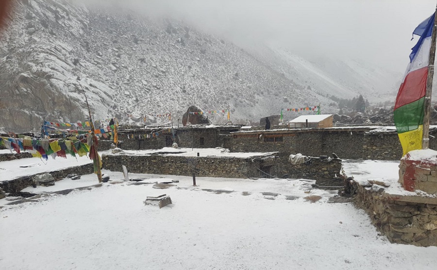 हुम्ला । जिल्लाको उत्तरी क्षेत्र लिमीलगायतका उच्च क्षेत्रमा हिमपात भइरहेको छ । मङ्गलबार रातिदेखि ती क्षेत्रहरुमा हल्का हिमपात भइरहेको हो । नाम्खा गाउँपालिका–६ को हिमालपारीको गाउँ लिमीलगायत उच्च स्थानमा हिमपात भइरहेको लिमीका वडा अध्यक्ष पाल्जोर तामाङले बताएका छन् । उनले मङ्गलबार रातिबाट हल्का हिमपात हुने क्रम जारी रहेको र जमिनमा हिउँ जम्न सुरु भएको जानकारी दिए ।
