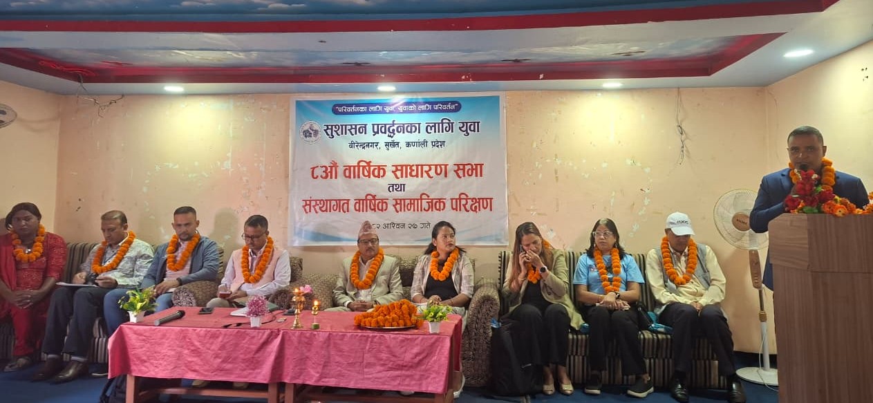 कार्यस्थलमा सुरक्षित वातावरणका लागि सुर्खेतमा गुनासो सुनुवाइ समिति गठन कर्णालीका ३७ स्थानीय तहमा टेलिकमका सेवा विस्तार निजामती कर्मचारी संगठनद्वारा रोकाय परिवारलाई राहत र मनोबल प्रदान सुर्खेत नापी कार्यालय आगजनीपछि अझै सेवा ठप्प, एक महिनादेखि प्लट रजिस्टर हातैले पुनःलेखन शुभ दीपावलिको अवसरमा ‘भायानेट होलसेल बजार’ सुर्खेतमा सुरु सुर्खेत महिला जेसीजलाई राष्ट्रियस्तरको वोमेन इन सोसल चेन्ज अवार्ड सुशासन प्रवद्र्धनका लागि युवाको आठौँ साधारणसभा सम्पन्न जुम्लाबाट ३३ करोडभन्दा बढी मूल्यको स्याउ बिक्री, किसानको आयमा उल्लेखनीय वृद्धि Posts pagination 1 2 … 913 Next